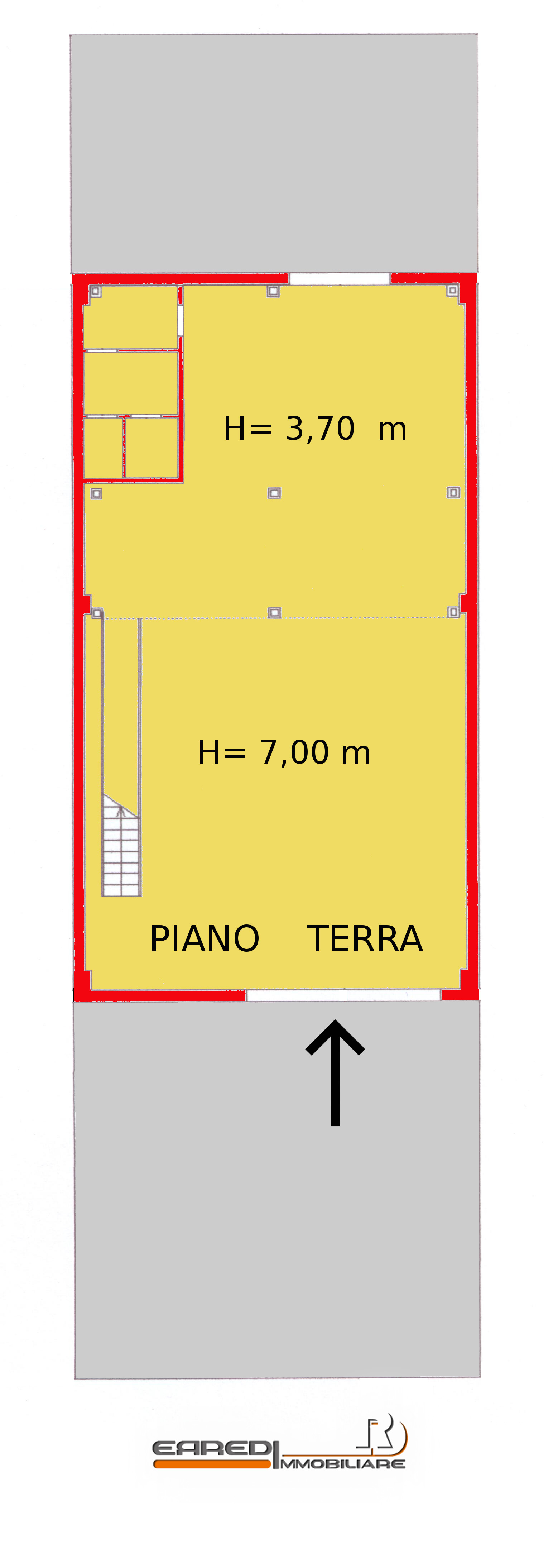 Recente capannone di complesso a carattere artigianale, dotato di accesso indipendente con cancello carrabile automatico e relativo piazzale di circa 90/100 Mq. L’accesso nel capannone è garantito da un portone carrabile con passo d’uomo. In un primo impatto l’altezza dello stesso è di circa 7,00 metri, mentre sul fondo, l’altezza  si riduce a circa 3,80 metri, dove si trovano gli uffici sul piano soppalco, strutturati in tre ambienti principali. Servizi e doccia posti al terra in prossimità del secondo portone con accesso a piazzale secondario.   Attestazione di prestazione  energetica (A.P.E.) ” G” pari a 45,58 Kw/H-m3-anno.