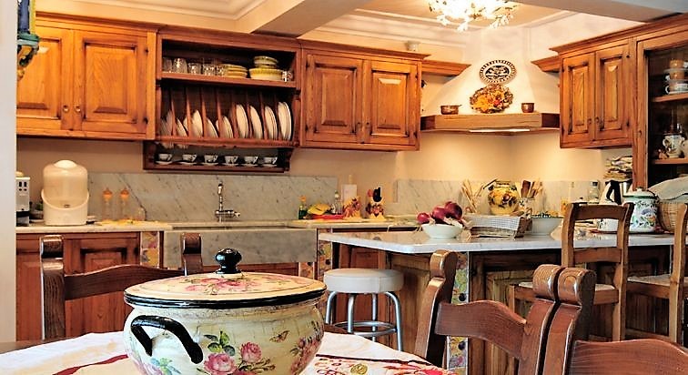 Al piano inferiore a cui si accede sia dalla scala interna che dal giardino, ci sono una grande cucina, salone, altre tre camere e tre bagni.