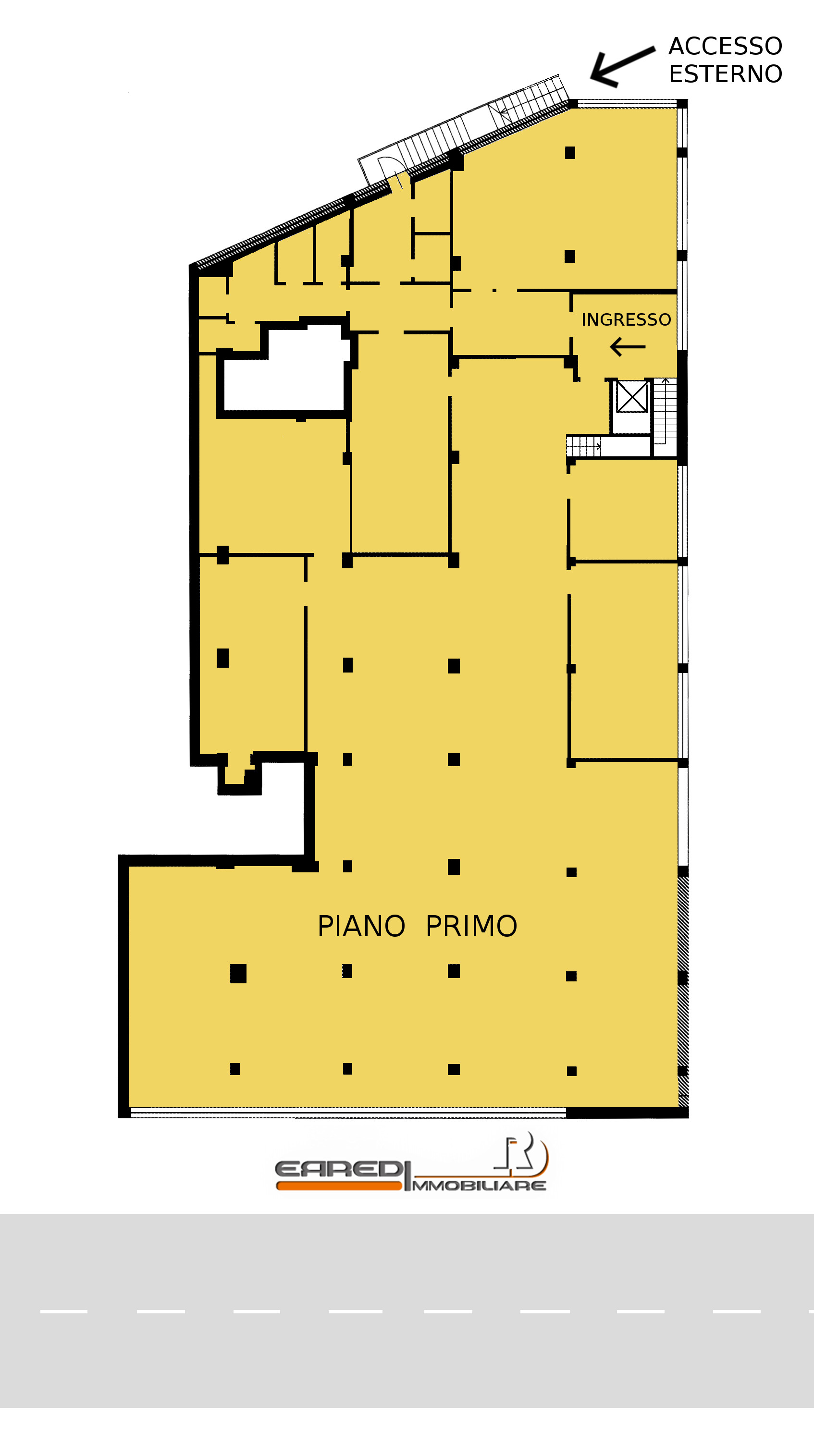 Si tratta di fondo posto al primo piano di edificio commerciale, ubicato in posizione di assoluta visibilità. Dotato di ampie e numerose finestre , vi si accede da due ingressi: uno condominiale ed uno indipendente. E’ completo di doppi servizi e numerose docce. Ha necessità di alcuni interventi prima di poter essere utilizzato , quali pavimentazione e servici igienici. Attestazione di prestazione energetica (A.P.E.) in corso di rilascio.