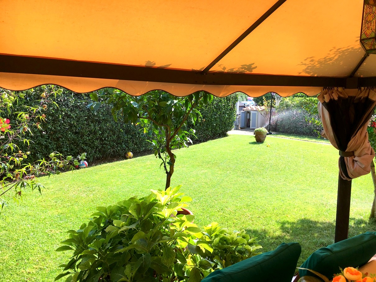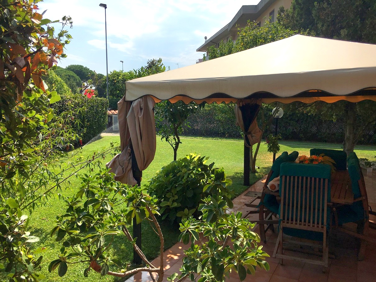 VILLAGGIO EMILIO: Piano terreno rialzato di palazzina con ampio giardino, posto auto, garage doppio e cantina. Ingresso, soggiorno con balcone, sala da pranzo, cucina ab. con veranda, 2 camere matr., doppi servizi e rip. T.A. In ottimo stato. Classe G, IPE 147,3. € 280.000