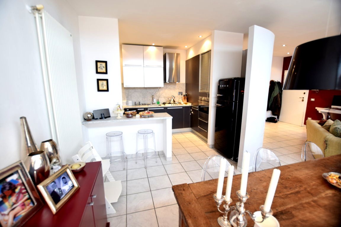Appartamento in perfette condizioni con ottime rifiniture, luminosissimo e particolare. Taglio moderno, volumi ben distribuiti, ampia zona giorno con balcone, cucina a vista, zona pranzo e zona soggiorno con affaccio su ampio balcone, disimpegno notte, due bagni, ampia camera matrimoniale con stanza armadi, seconda camera e ripostiglio. Possibilità acquisto posto auto coperto. Classe G Ipe 122 Rif 2034